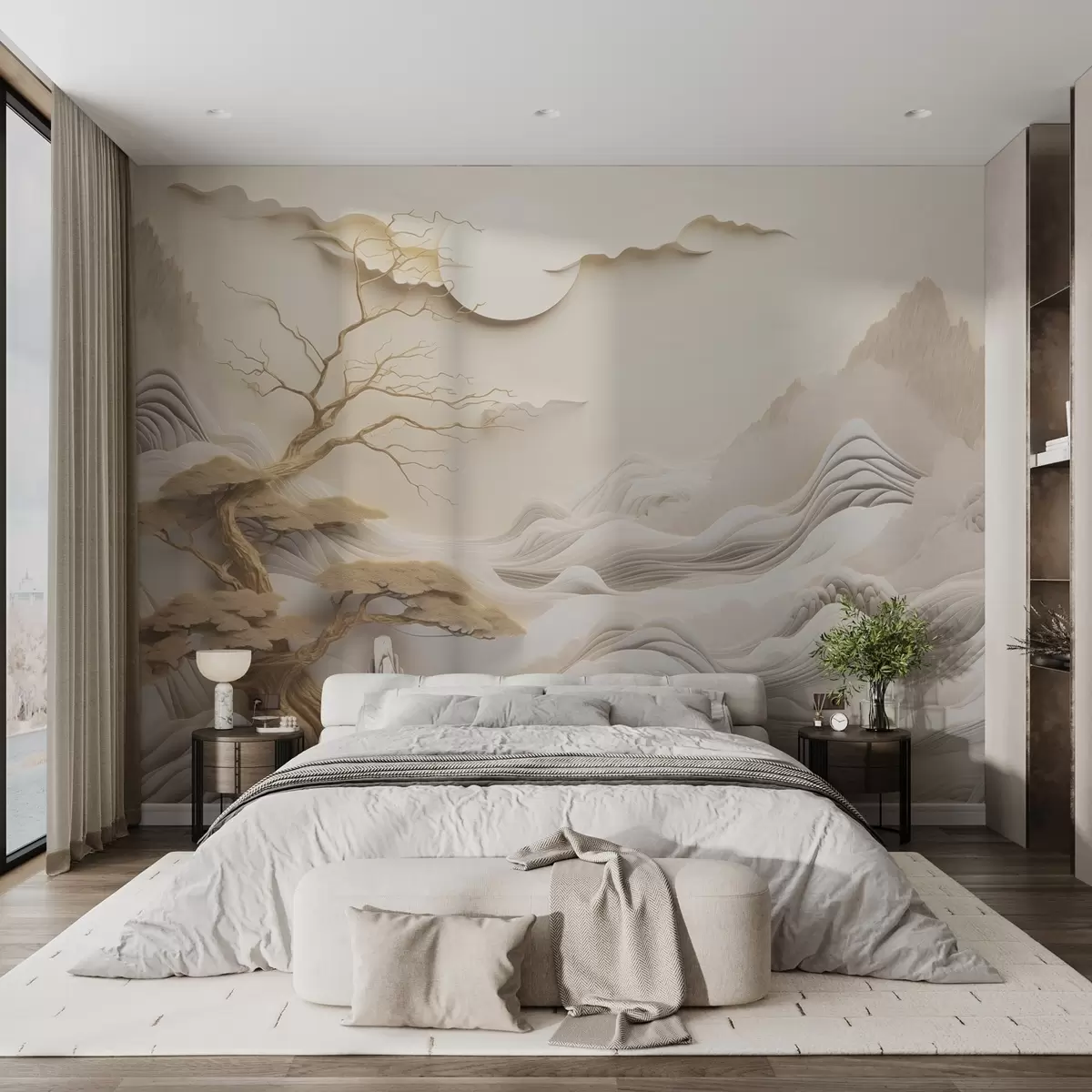 Oriental landscape with trees and mountains - Wall mural (No. w03803)
