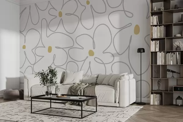 Minimalistic flowers line art in light colours - Wall mural (No. w03812)