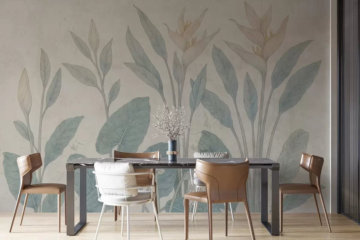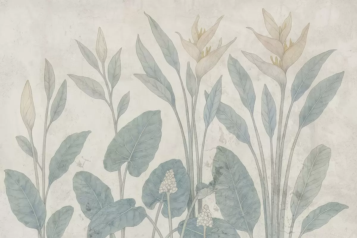 Grunge leaves on an old wall - Wall mural (No. w03823)
