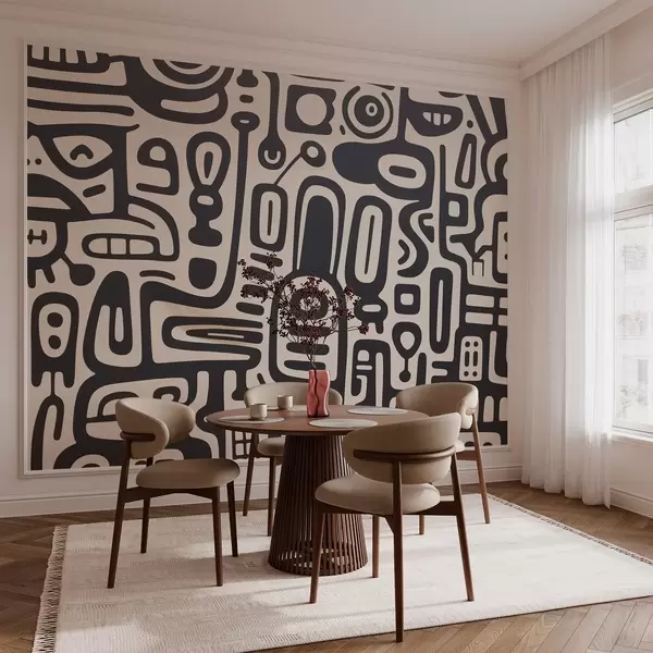 Grey graffiti on a beige background - Wall mural (No. w03834)