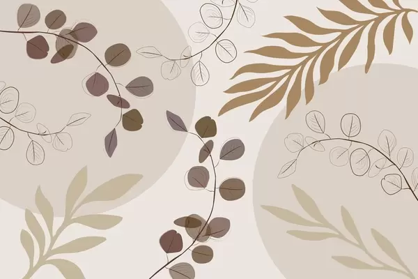 Abstract composition with leaves in beige tones - Wall mural (No. w03857)