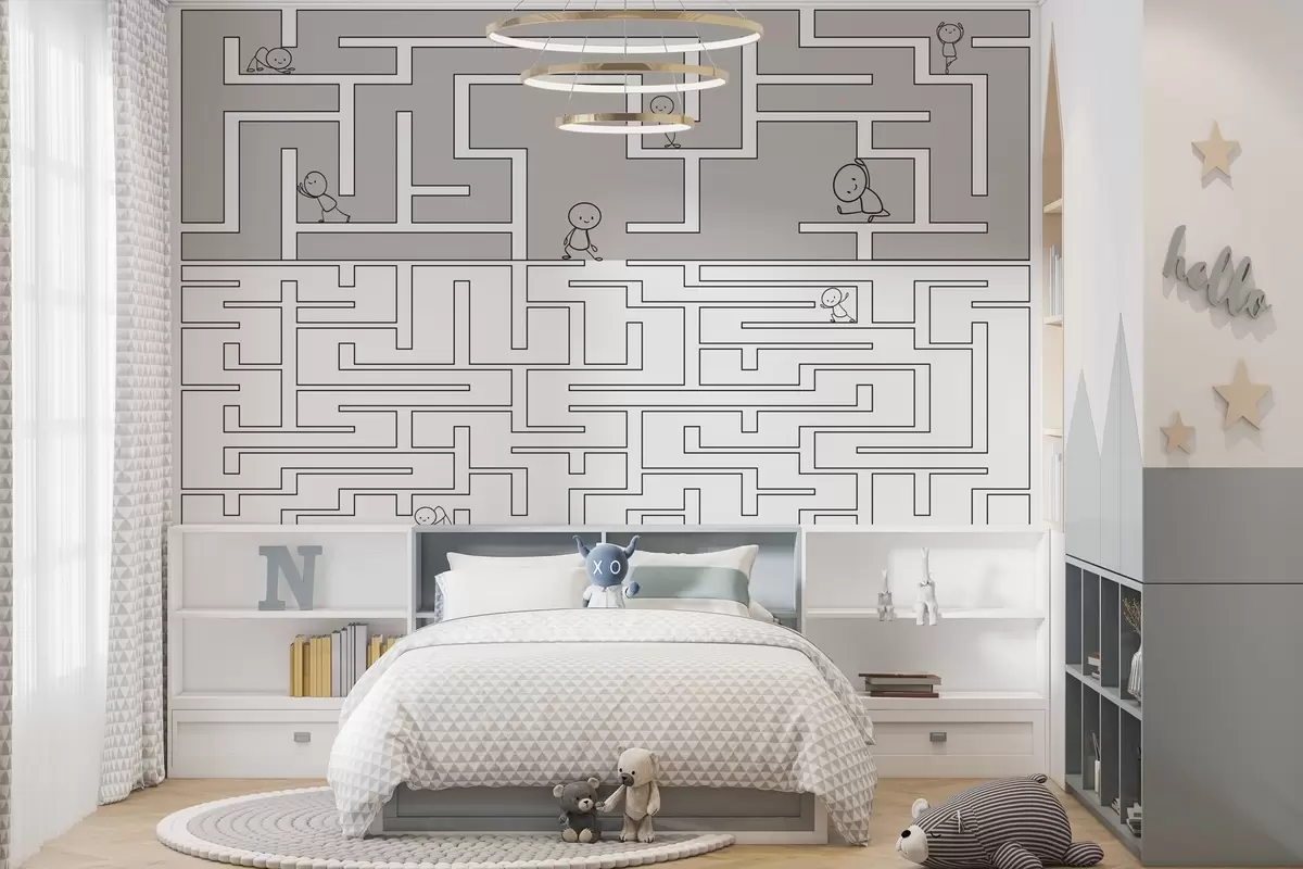 Labyrinth in light grey and white - Wall mural (No. w03873v5)