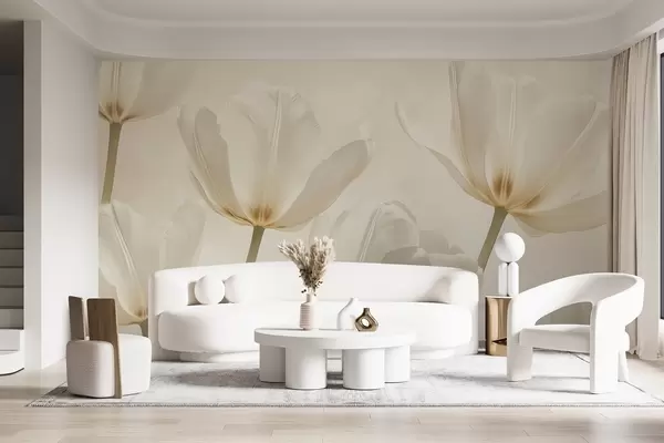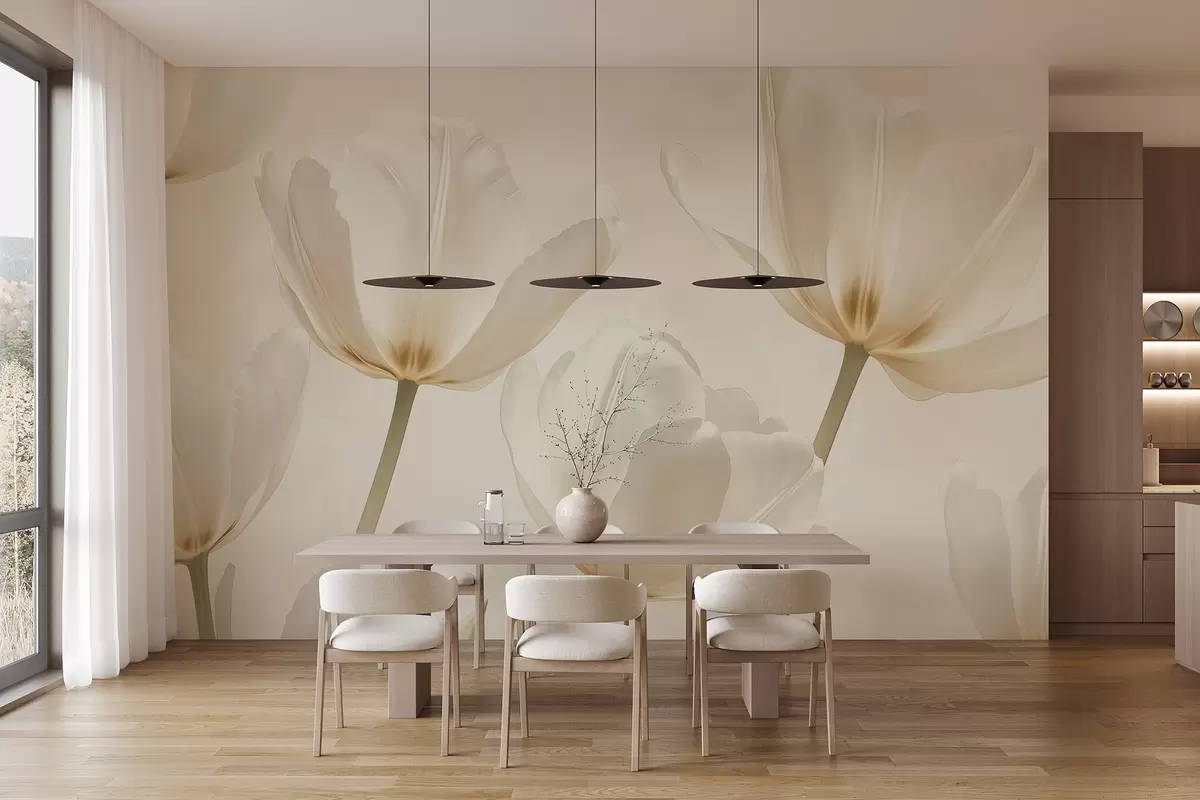 Beautiful tulips, floral, beige colors, realism - Wall mural (No. w03877)