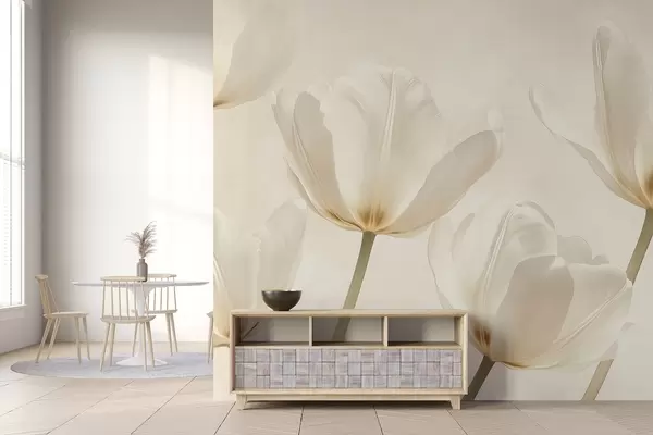 Beautiful tulips, floral, beige colors, realism - Wall mural (No. w03877)