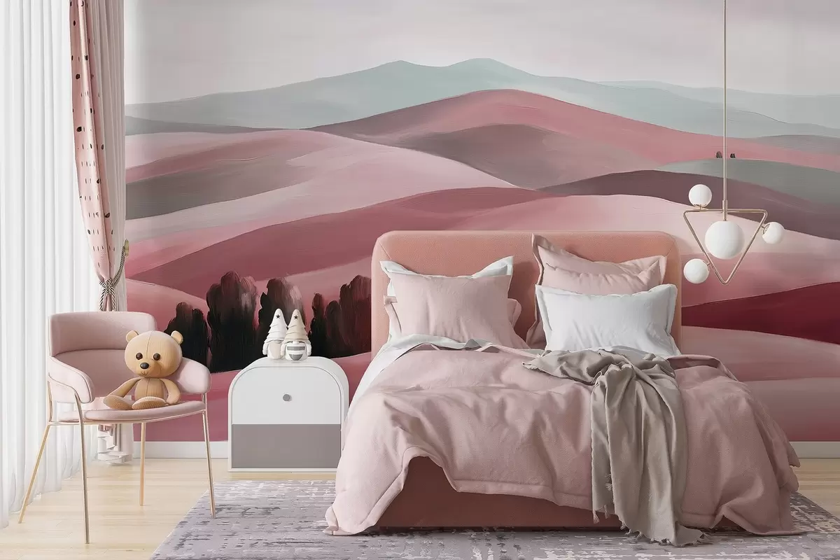 Landscapes with trees, Tuscany, pink colors, oil style - Wall mural (No. w03880v2)