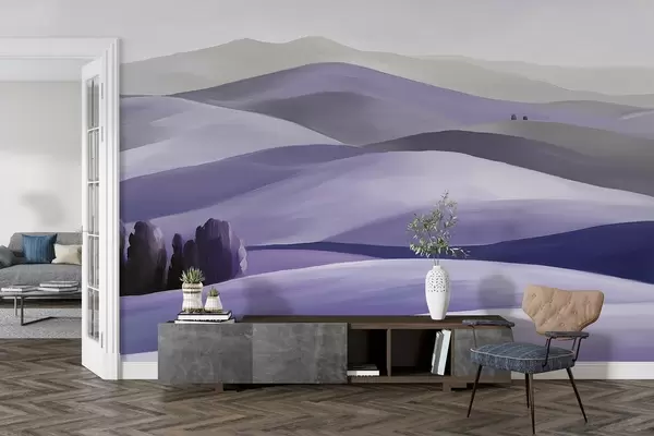 Landscapes with trees, Tuscany, purple colors, oil style - Wall mural (No. w03880v3)