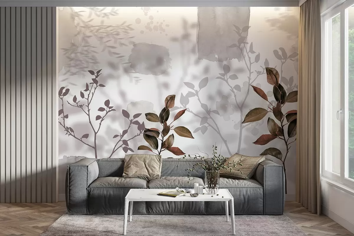 Lemon tree leaves, tree branches shadows, nature, watercolor - Wall mural (No. w03910)