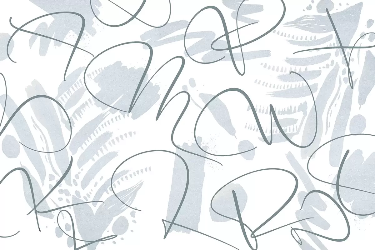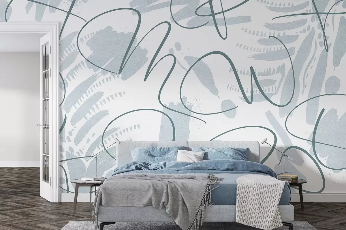 Calligraphic abstraction with letters, brush strokes, blue color - Wall mural (No. w03913v1)
