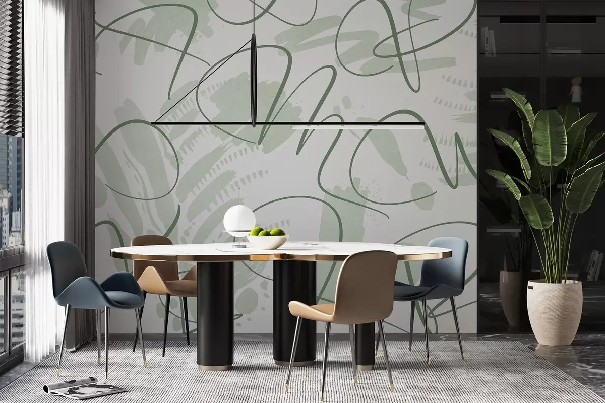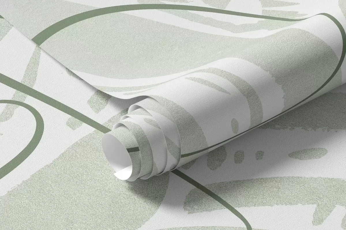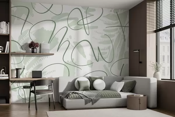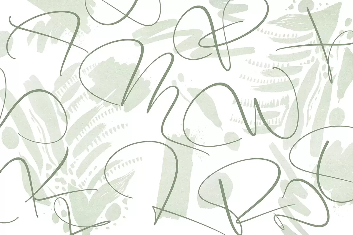 Calligraphic abstraction with letters, brush strokes, green color - Wall mural (No. w03913v3)