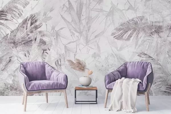 Floral abstraction in grunge style with imitation of abrasion, shades of purple - Wall mural (No. w03926v1)