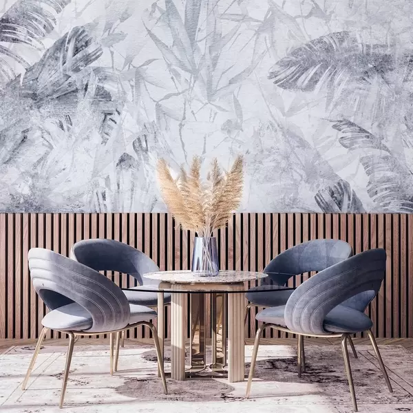 Floral abstraction in grunge style with imitation of abrasion, shades of blue - Wall mural (No. w03926v3)