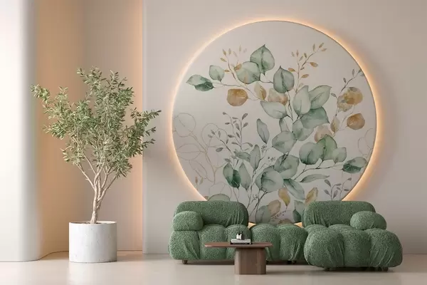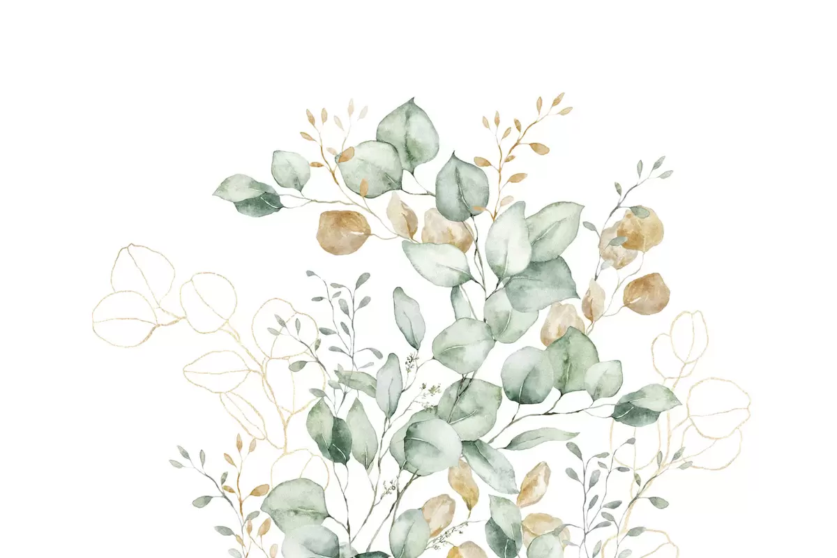 Vegetation and branches imitation of textured watercolor, shades of green and yellow - Wall mural (No. w03927)