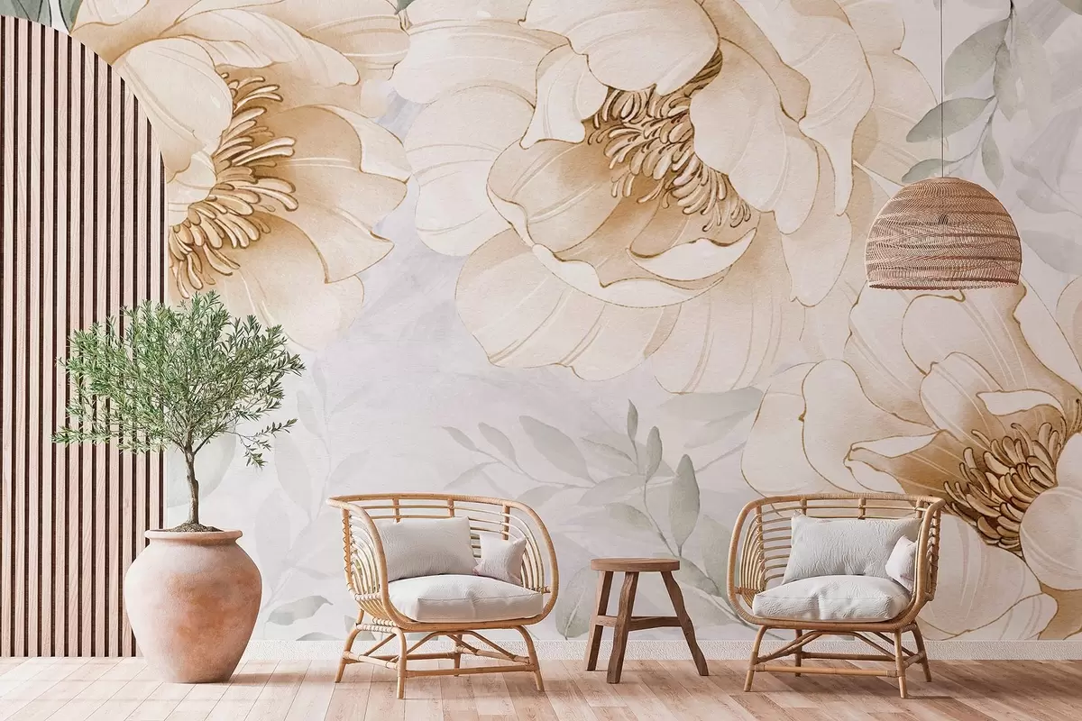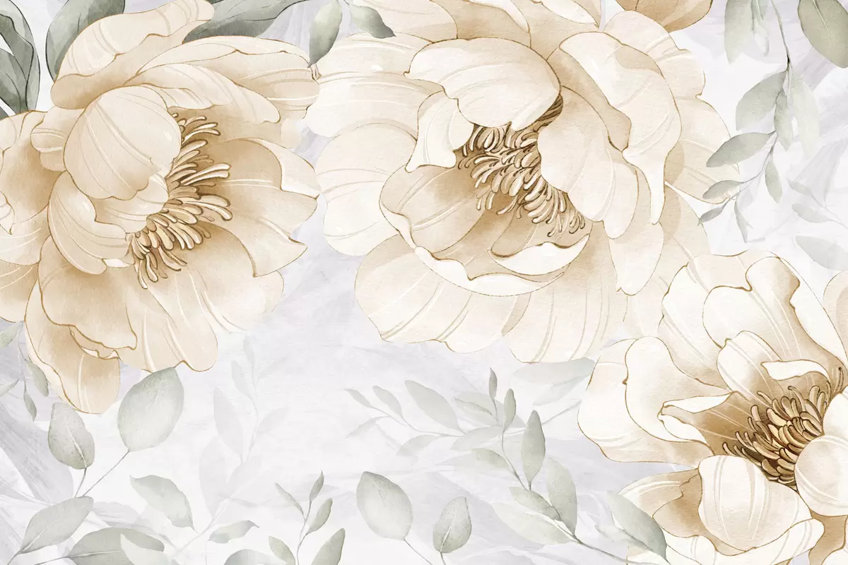 Yellow peonies imitation watercolor - Wall mural (No. w03932v1)