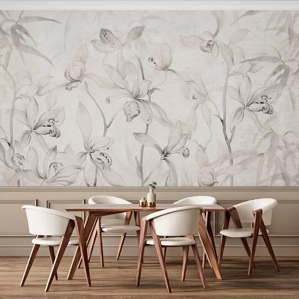Wild orchids, shades of beige - Wall mural (No. w03933v1)