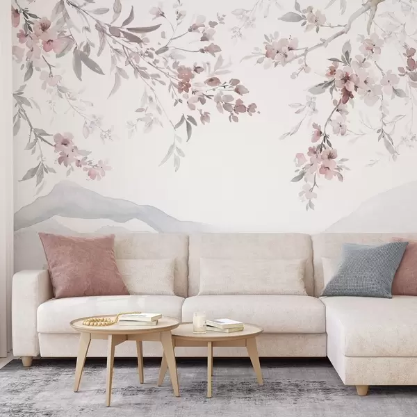 Flowering branches, imitation of watercolor - Wall mural (No. w03935)