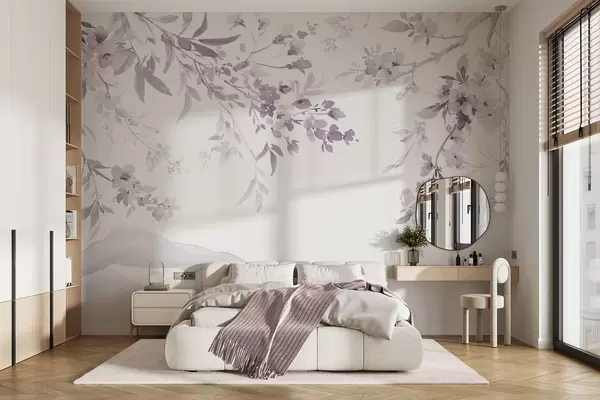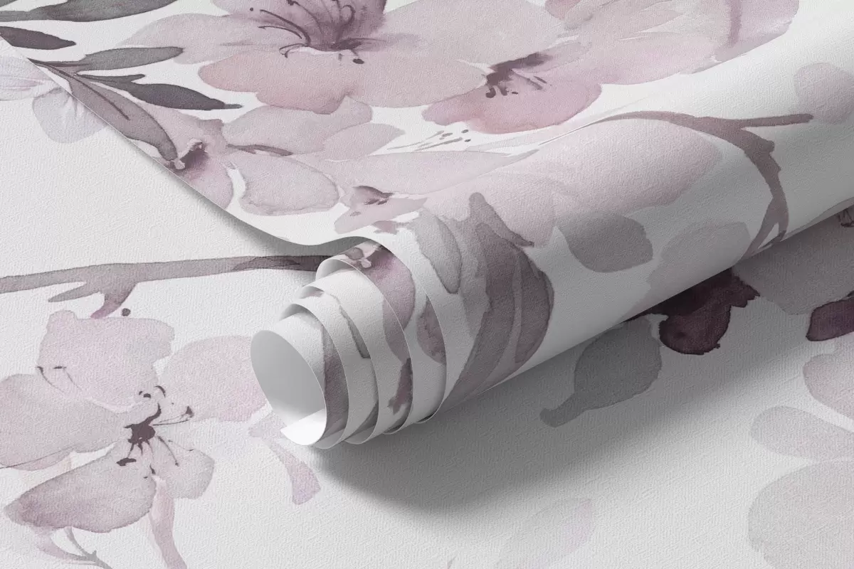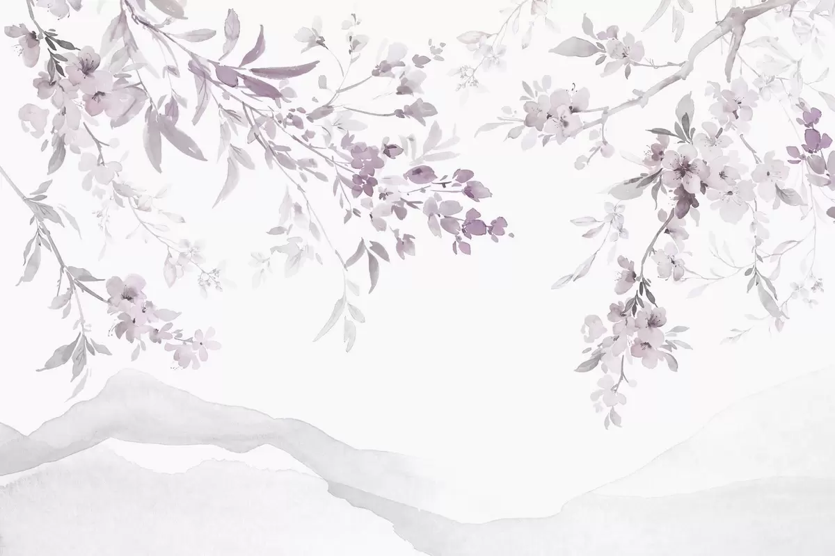 Flowering branches, imitation of watercolor, purple-pink shades - Wall mural (No. w03935v1)