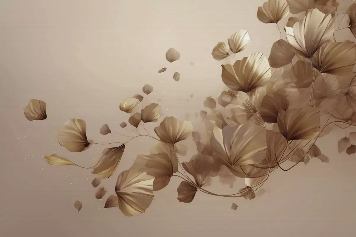 suspended mid-air, subtle glow, hand-drawn textures with pastel gradients, vintage paper background, abstract floral time loop - Wall mural (No. w03947v1)