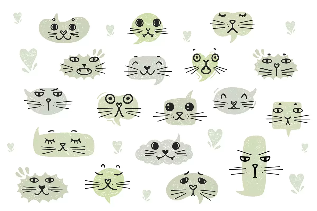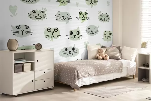 Cat faces shades of green - Wall mural (No. w03951v3)