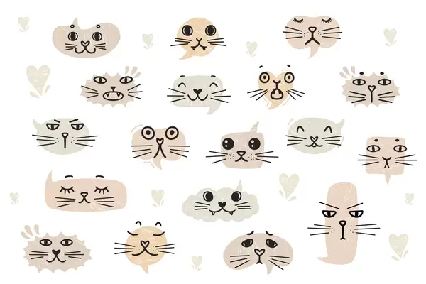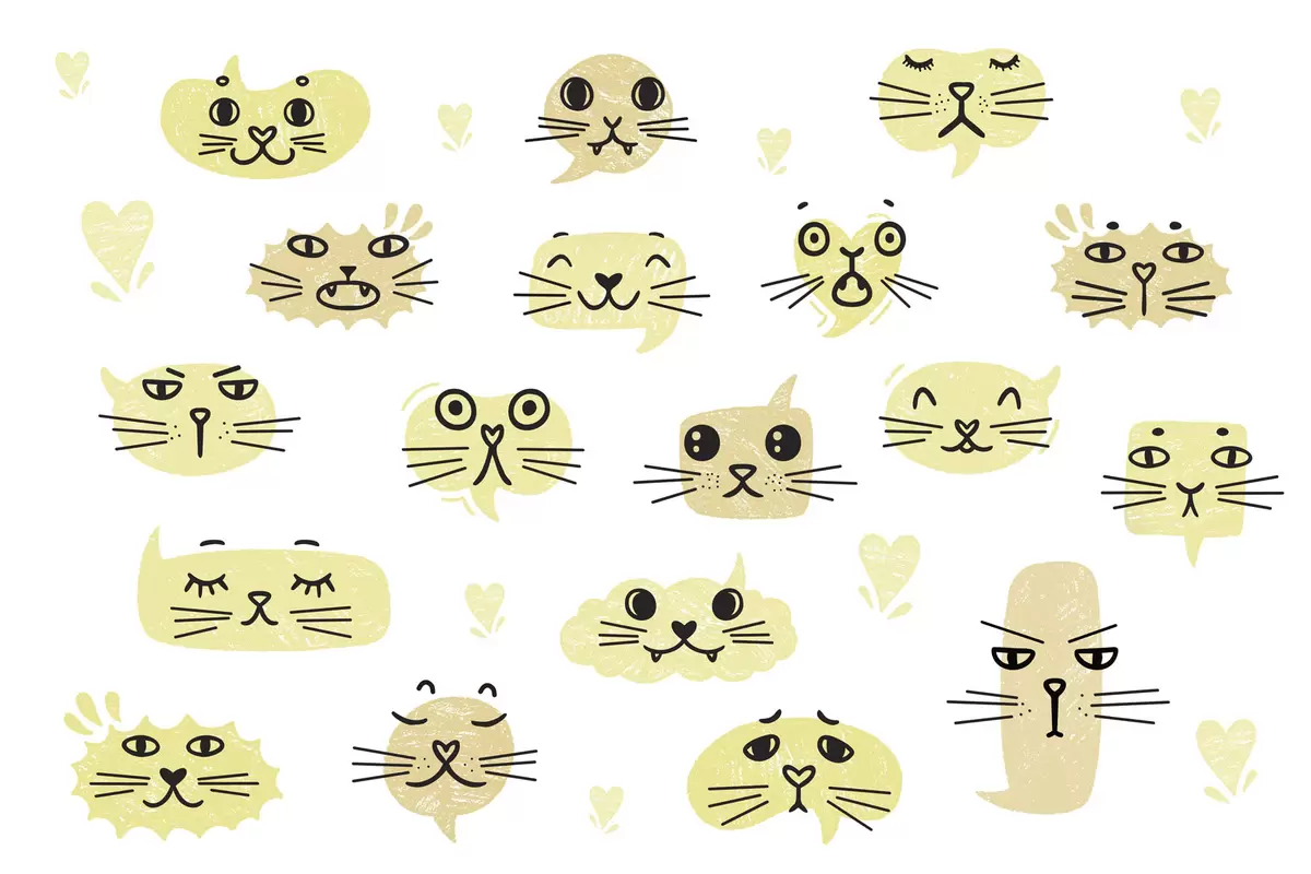 Cat faces shades of yellow - Wall mural (No. w03951v4)