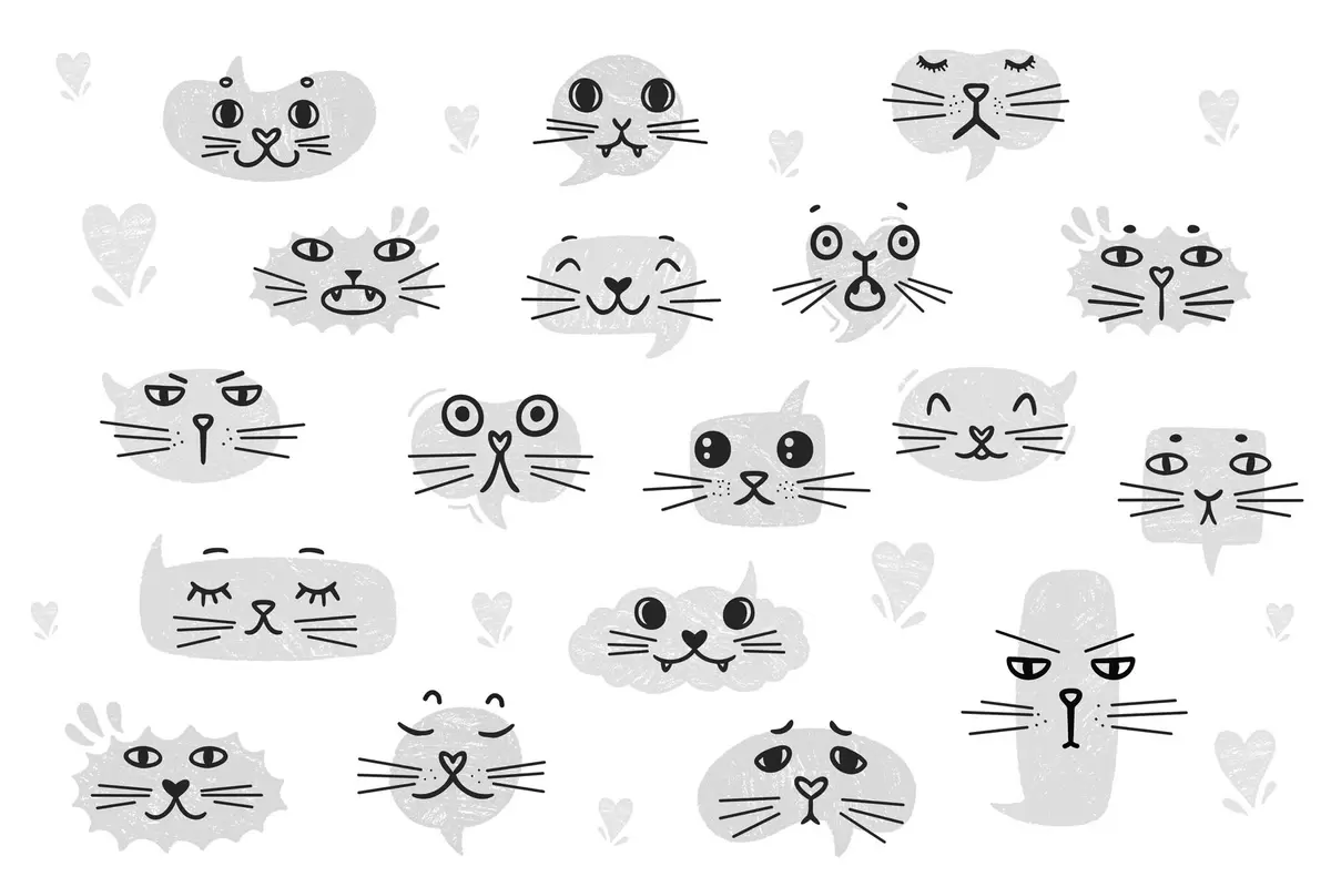 Cat faces monochrome - Wall mural (No. w03951v5)