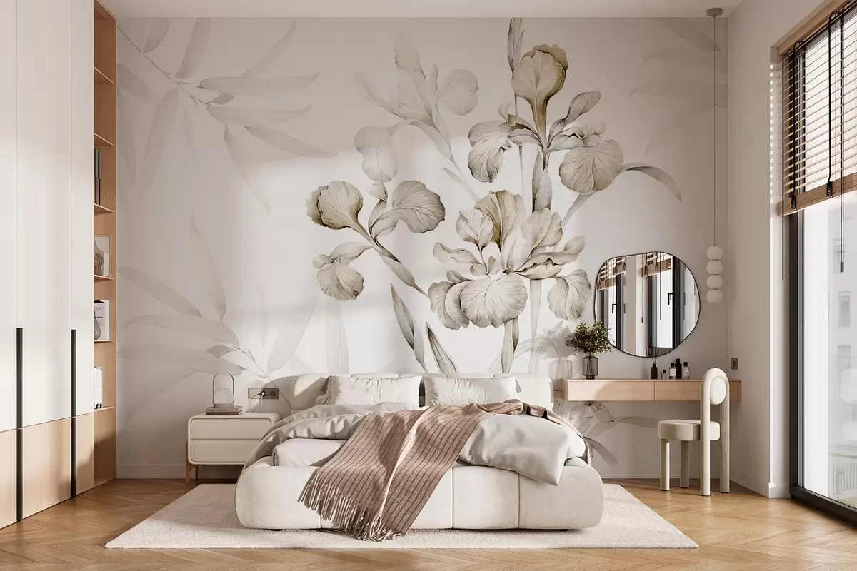 Irises, shades of beige - Wall mural (No. w03955v2)