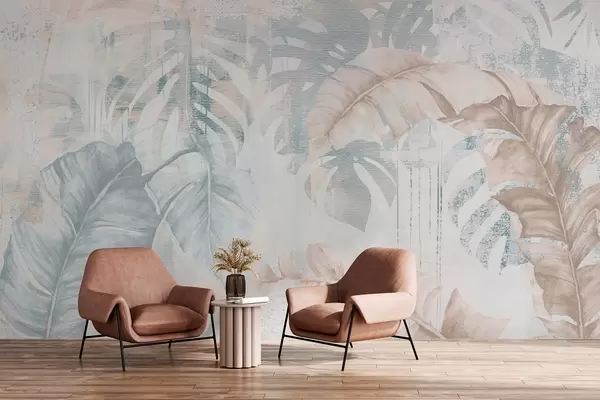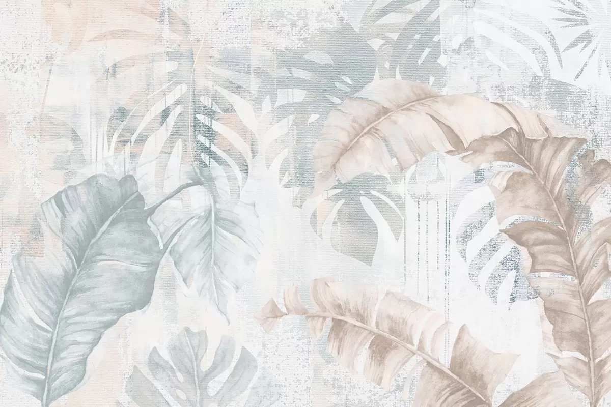 Tropical leaves in grunge style - Wall mural (No. w03956)