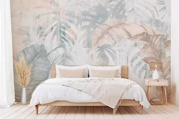 Tropical leaves in grunge style - Wall mural (No. w03956)