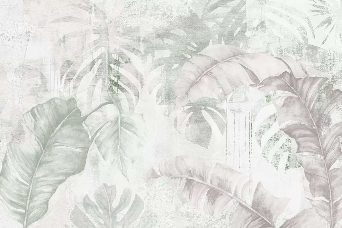 Tropical leaves in grunge style - Wall mural (No. w03956v2)
