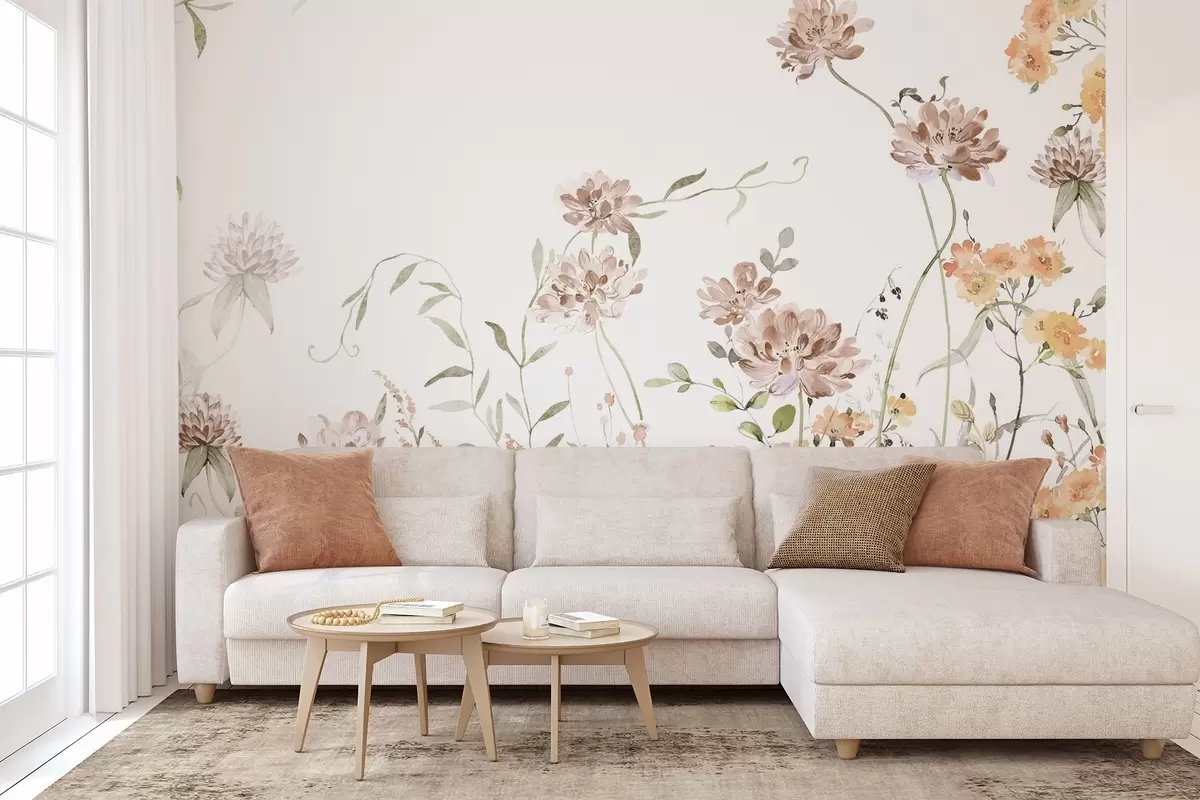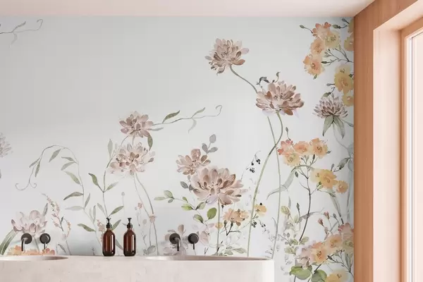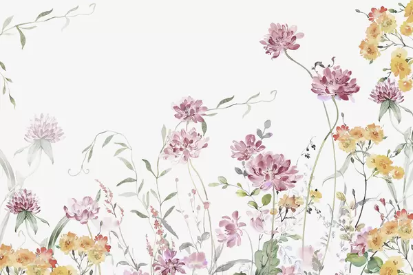 Wild flowers imitation of watercolor - Wall mural (No. w03957v1)