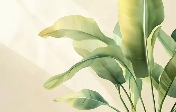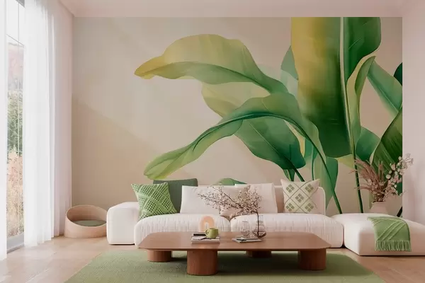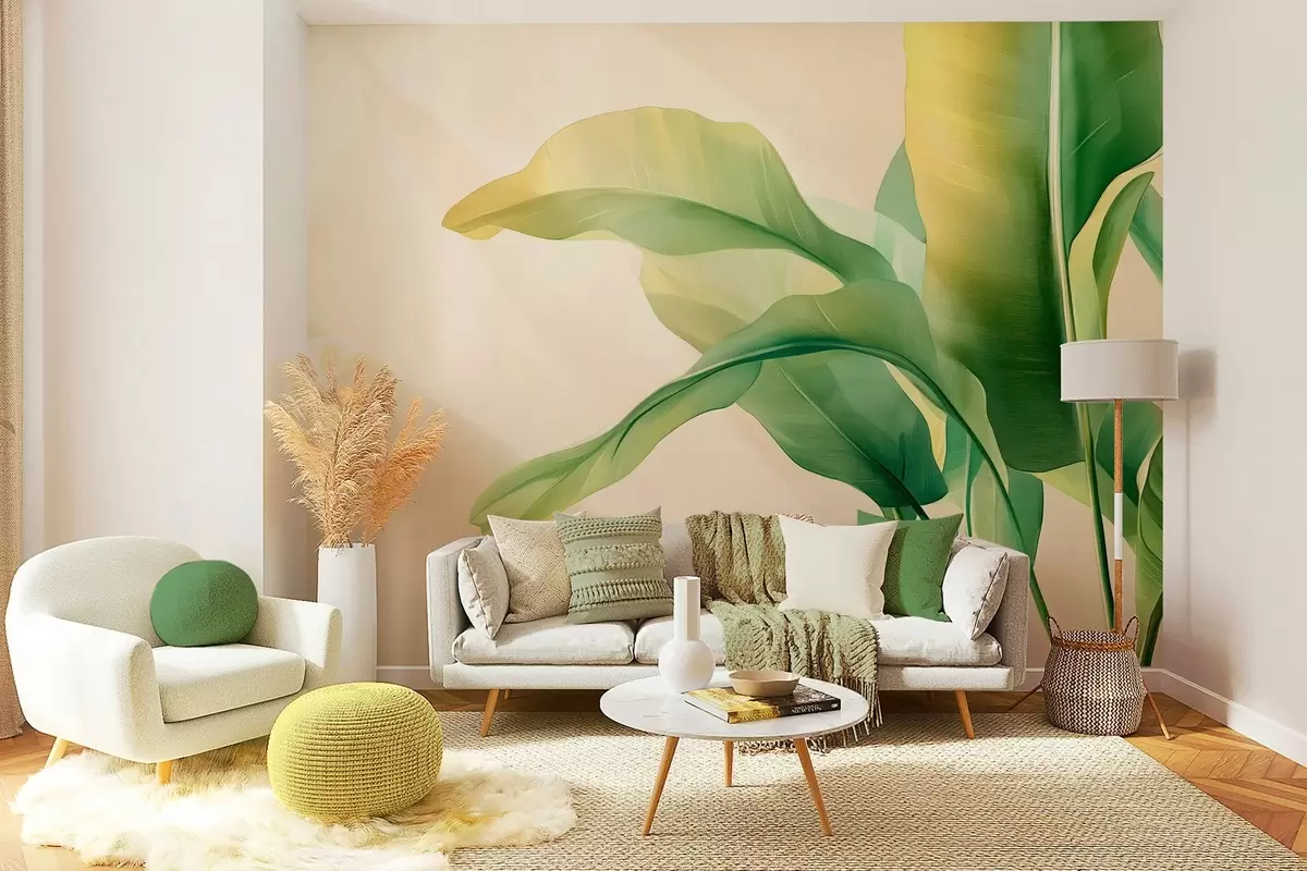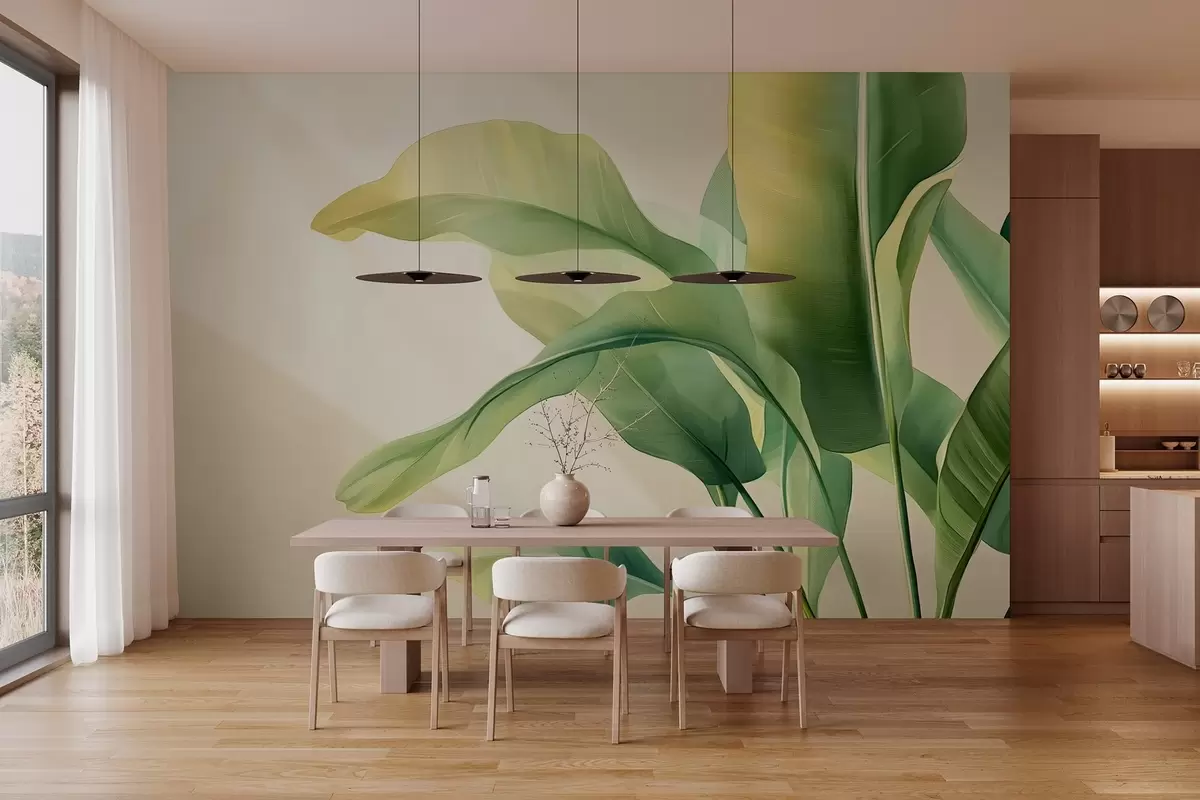 large green tropical leaves on the side - Wall mural (No. w03959)