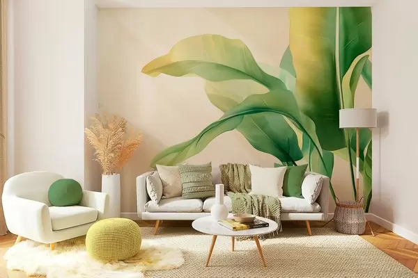 large green tropical leaves on the side - Wall mural (No. w03959)