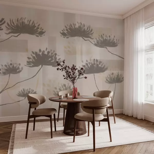 textured geometry in beige and cream tones with stylized umbrella flowers - Wall mural (No. w03960)