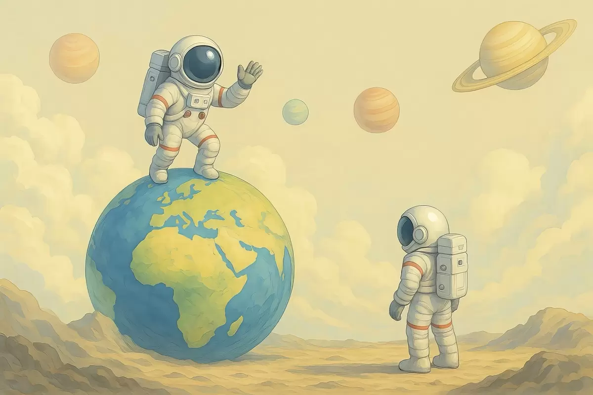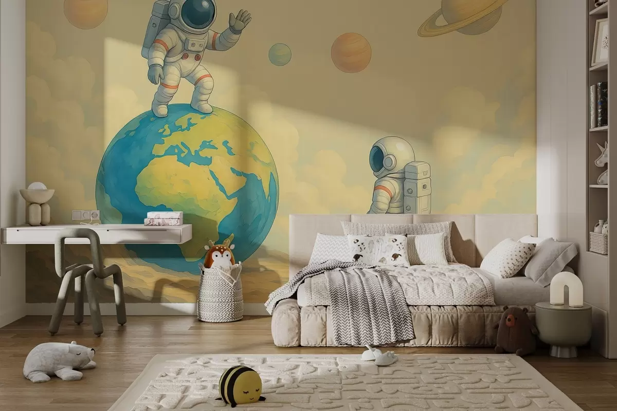 Watercolor fairytale astronauts - Wall mural (No. w03980)