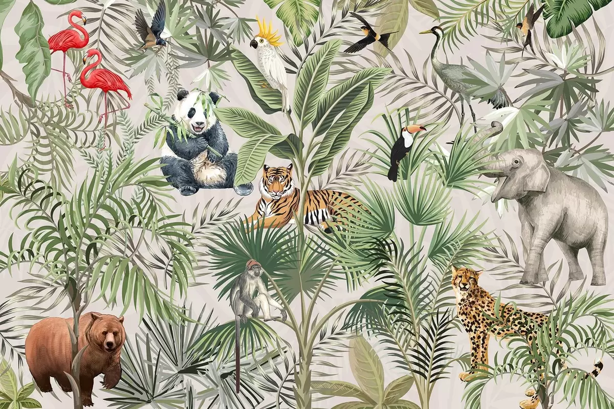 Animals in the jungle - Wall mural (No. w03983)