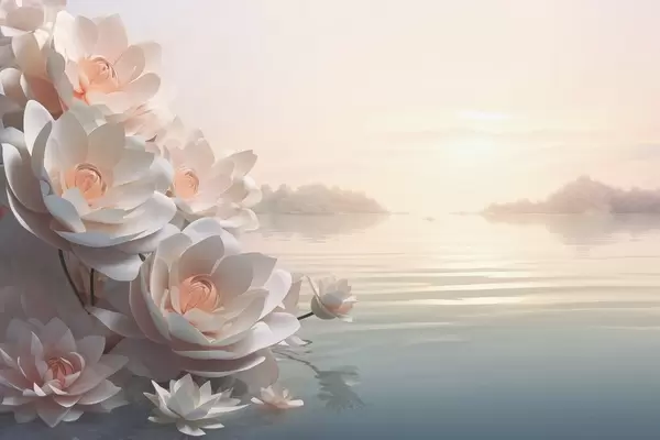 Pastel lotuses on the water under the evening sky - Wall mural (No. w03988)