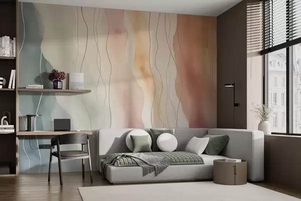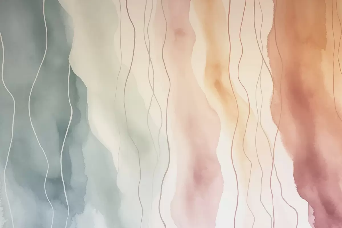 Abstract watercolour waves in warm and cool colours - Wall mural (No. w03989)