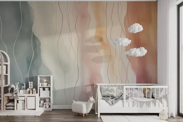 Abstract watercolour waves in warm and cool colours - Wall mural (No. w03989)