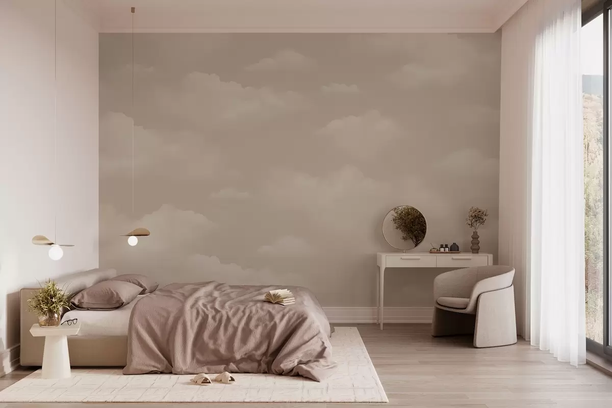Creamy clouds on a light beige background - Wall mural (No. w03994)