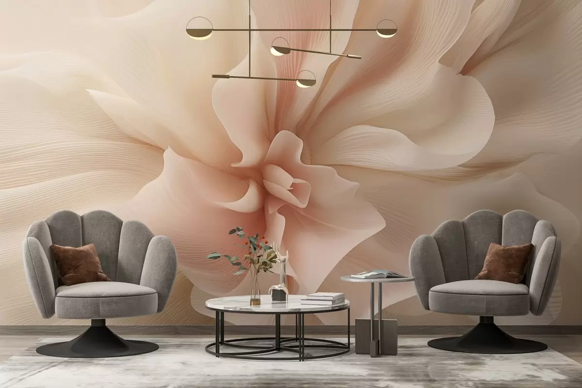 Abstract flower in delicate beige shades - Wall mural (No. w03996)