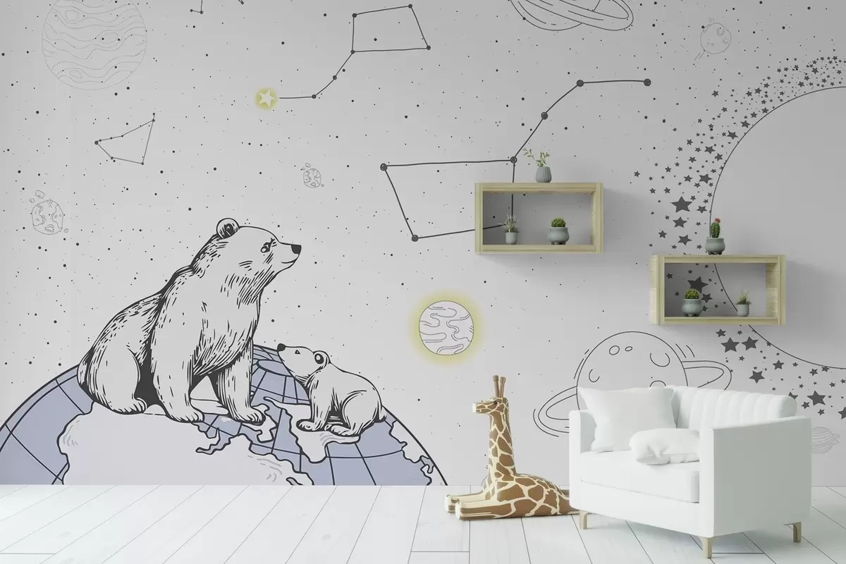 Bears and stars, astronomy, starry sky - Wall mural (No. w04002)