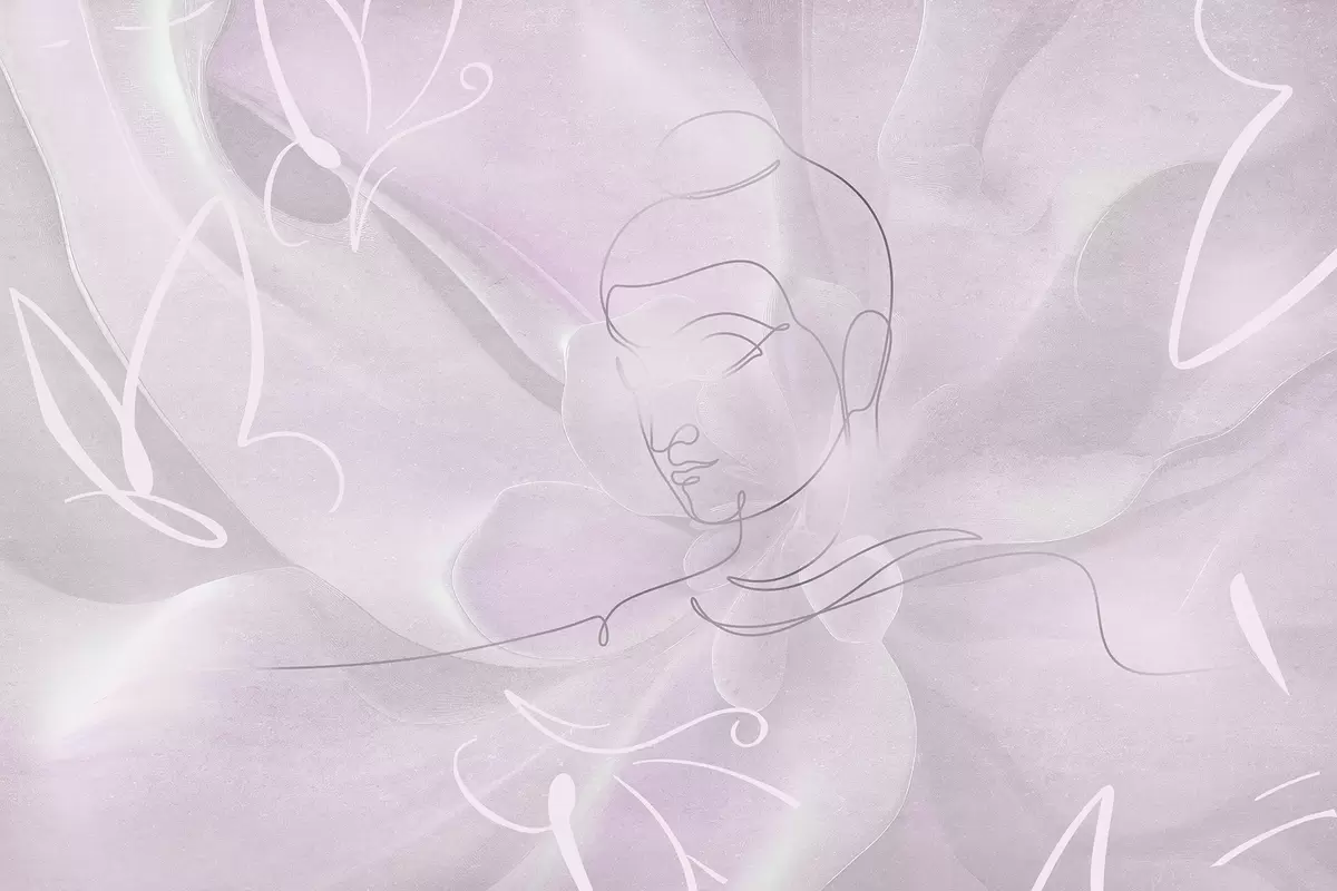 Floral abstraction with Buddha line drawing, pink colors - Wall mural (No. w04004v2)