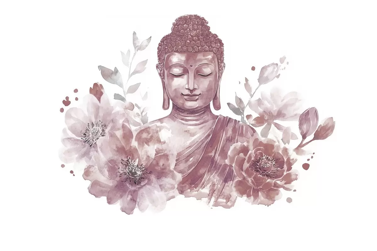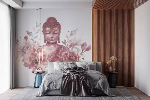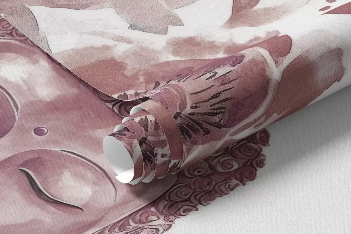 Watercolor Buddha with flowers, spiritual, burgundy color palette - Wall mural (No. w04005v2)