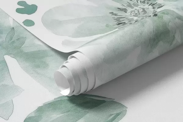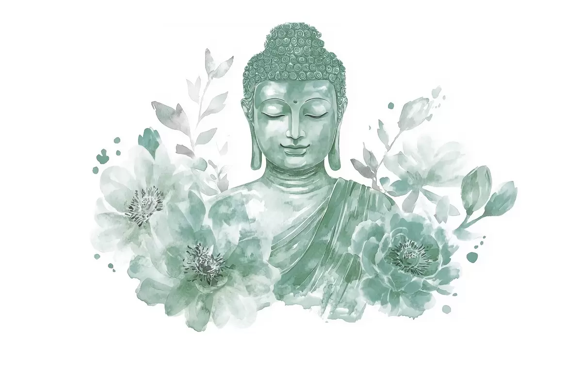Watercolor Buddha with flowers, spiritual, green color palette - Wall mural (No. w04005v3)