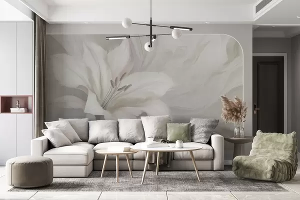 Lily flower fluid abstraction, floral, grey colors - Wall mural (No. w04006v2)