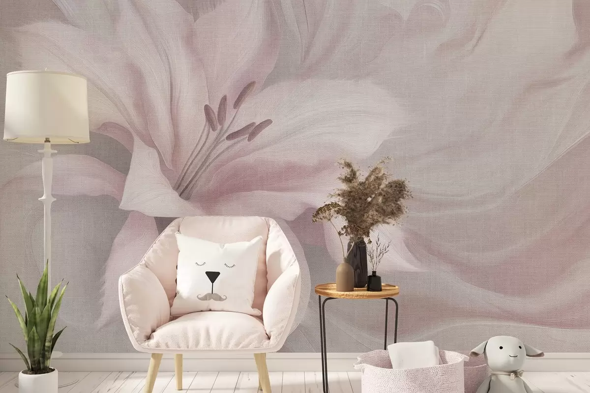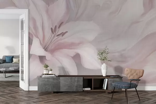 Lily flower fluid abstraction, floral, pink and beige colors - Wall mural (No. w04006v4)
