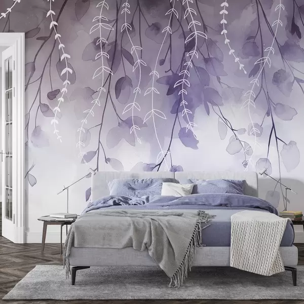 Branches with leaves in watercolor style, natural purple colors - Wall mural (No. w04007v2)