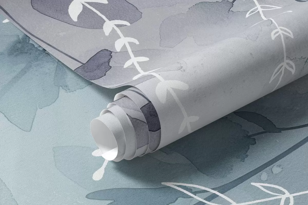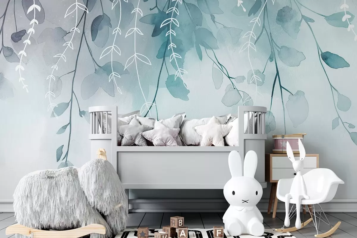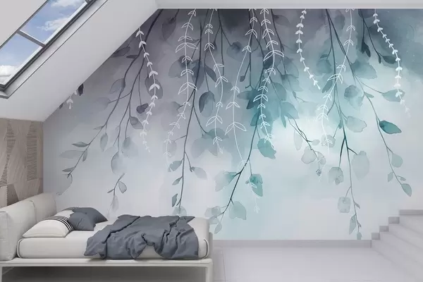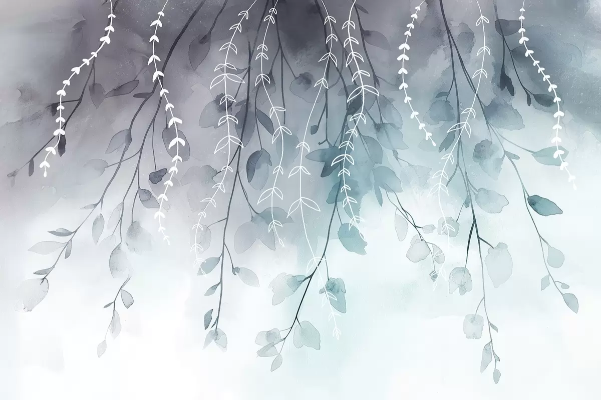 Branches with leaves in watercolor style, natural aquamarine colors - Wall mural (No. w04007v3)