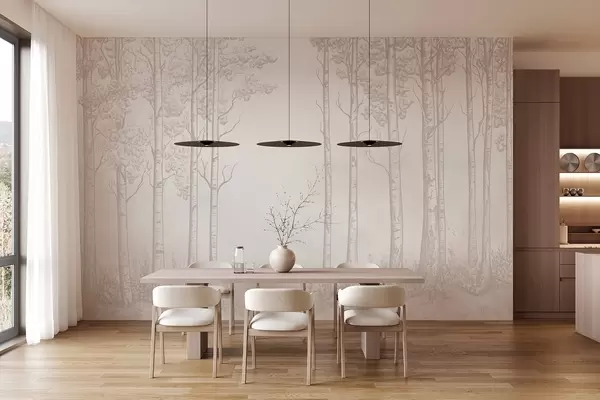 Forest with birch trees, minimalism, nature, beige color palette - Wall mural (No. w04009v3)