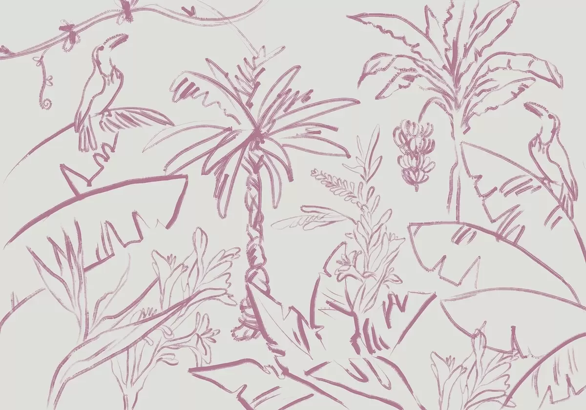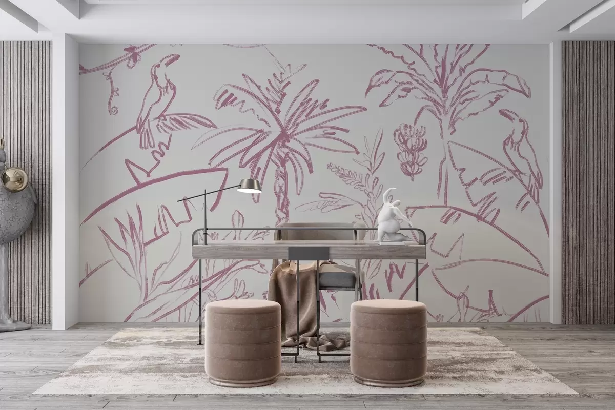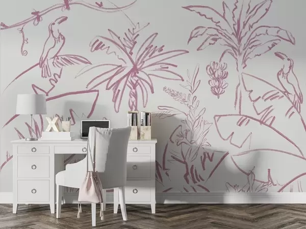 Tropical lines in pink, tropical plants, bananas - Wall mural (No. w04020v2)