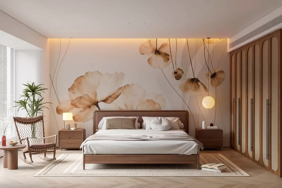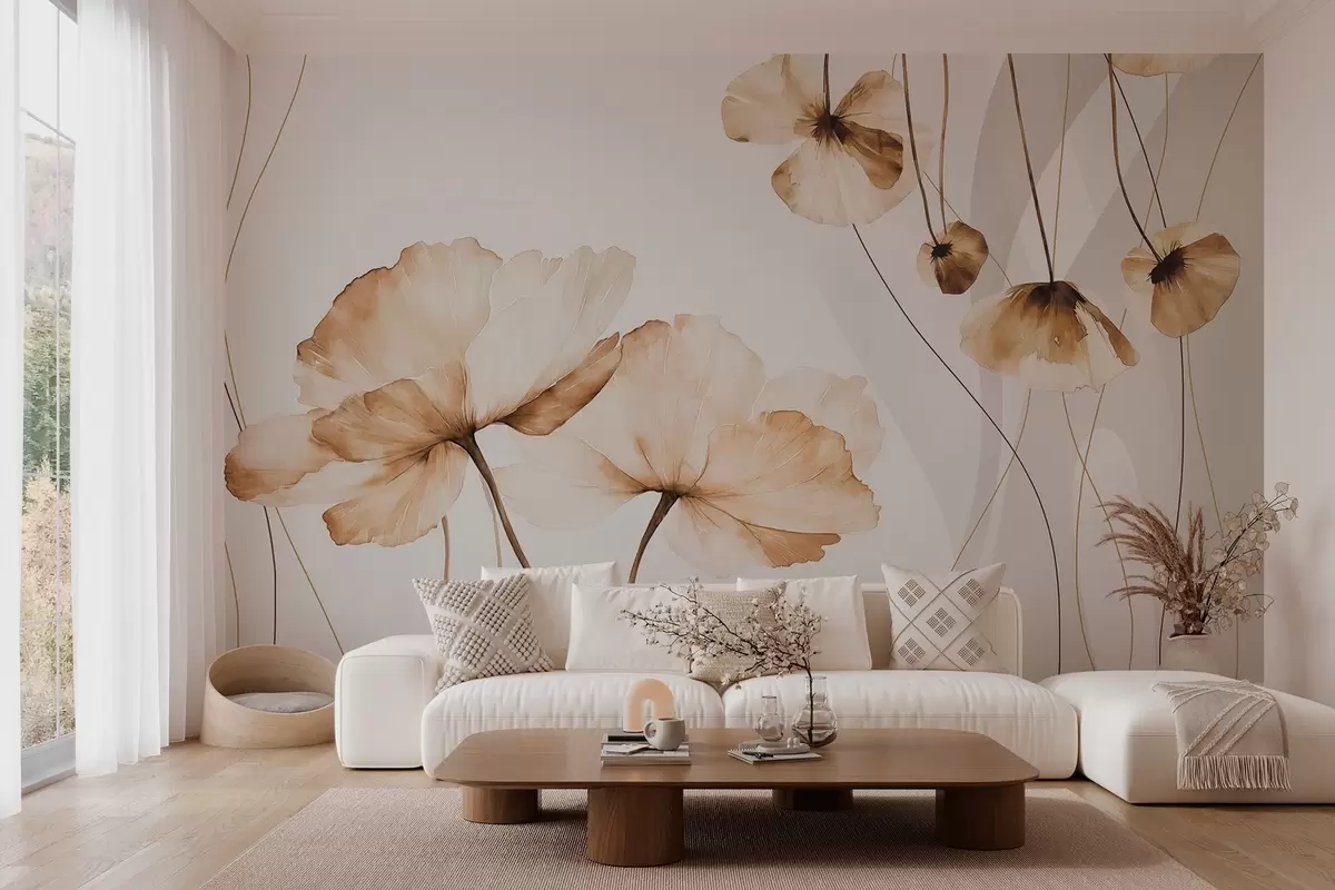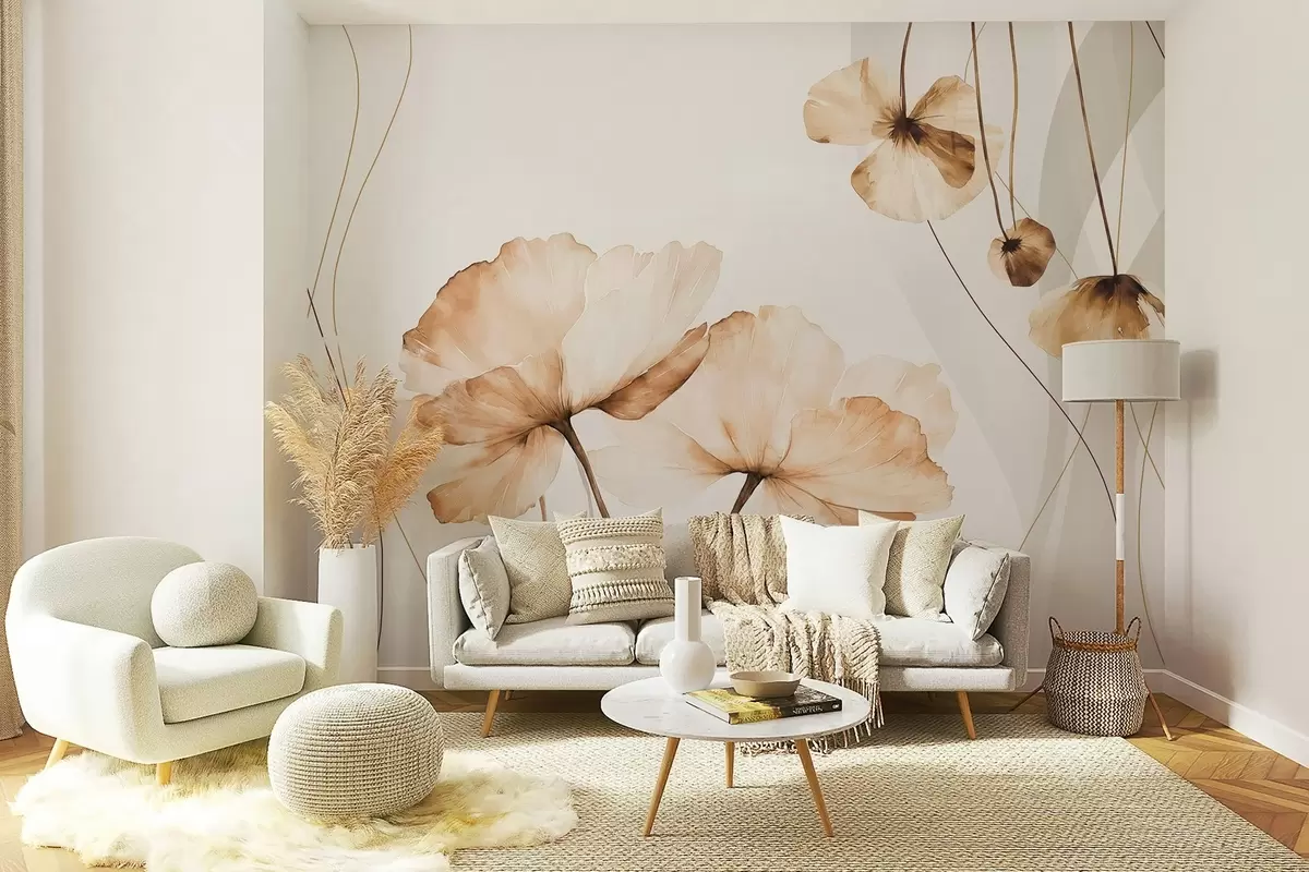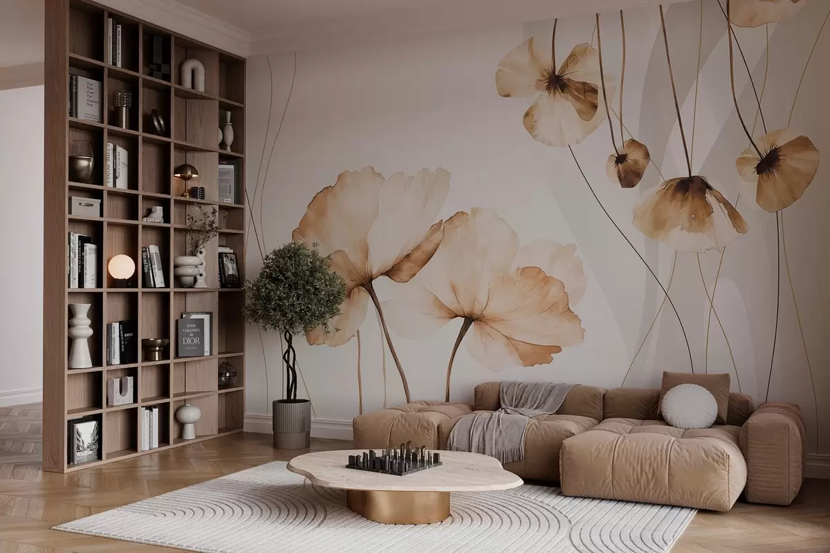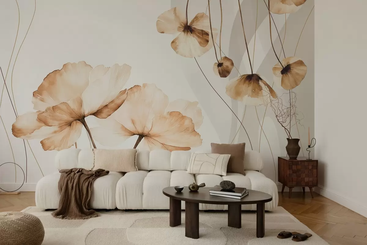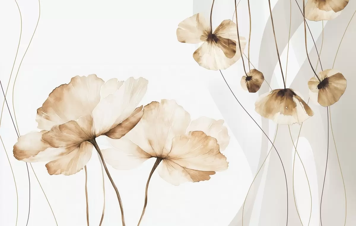 watercolor-style flowers in brown tones - Wall mural (No. w04026)